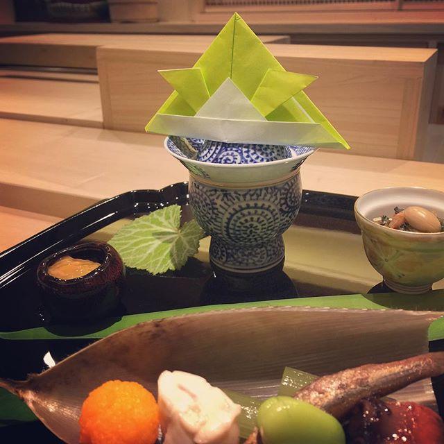 The main dish with #origami of "kabuto", a samurai warrior helmet.