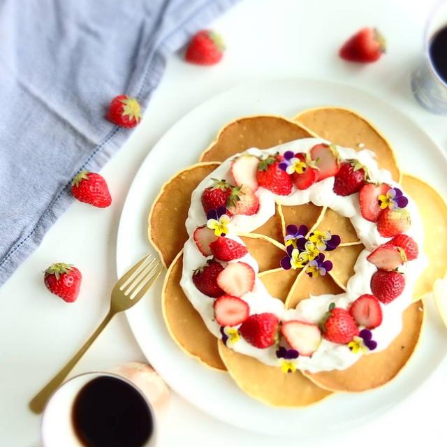 .昨日のふわふわホイップクリームと苺のパンケーキでおはようございます..熊本産のほのかと長崎産のさちのかお安くなっていましたが、とっても甘くて美味しかったです ...弟と可愛い姪っこちゃんが無事帰省してくれたのでおやつに作りました ...(けれども夕方遅かったので食べてもらえず) ..子どもたちと3人で食べましたとさ...いいんだよ!今日も懲りずに作りまーーす ⑅ (>ω<〃)♡...#日本が元気になるお菓子