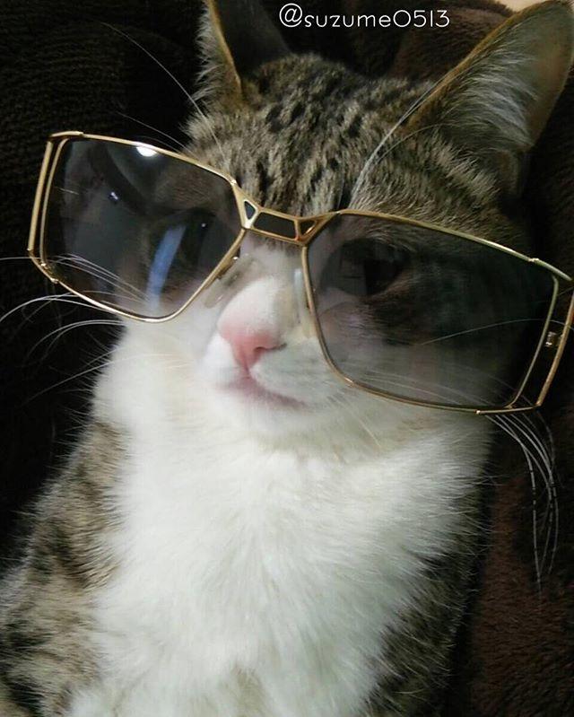 σ( o∀o )σ YO!!YO!!YO!! .#サングラすーちゃん.ボスに貸してもらったにゃ(*ΦωΦ*)✨.#サングラス#猫#ネコ#neko#cat#cute#catstagram#ねこ#pet#instacat#ねこ部#無敵の親バカ同盟#kawaii#world_kawaii_cat#cutecat#ニャンズホストクラブ#すずめ#1歳#おにぎり模様猫#ちゅーる食べ隊#美にゃんこちびっ子部#小さな猫が大きな癒しにニャる#前髪パッツン猫部#広島にゃんこ