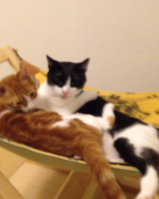 ガブちゃん、またナグちゃんにくっつき虫 ナグちゃんエステがばれてきちゃったね #猫 #ねこ#ネコ #コネコ #子猫 #こねこ #子猫保護しました #茶白 #cat #ガブちゃん #茶白男子部 #ナグちゃん #ハチワレ #はちわれ #黒白