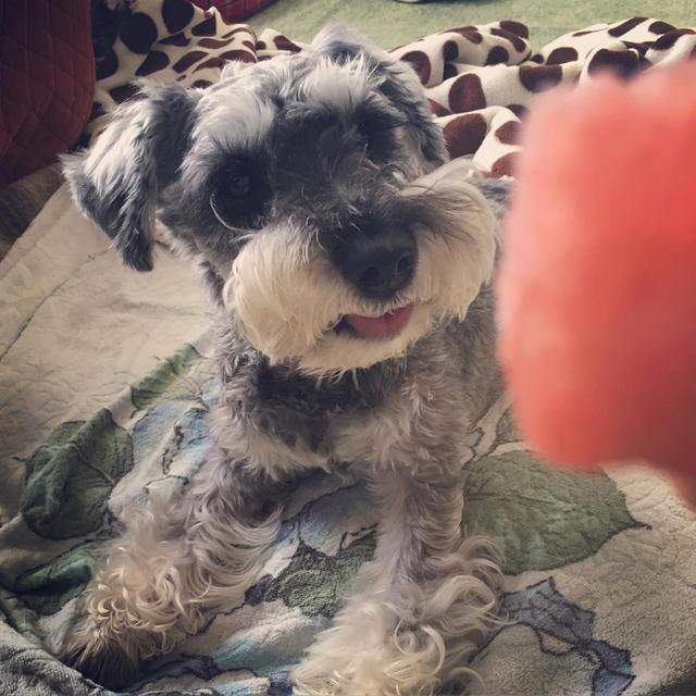 きゃっほーい♪ * 今年 お初の スイカ 食べたでつよぉ〜 * ウマウマ〜 * #ミニチュアシュナウザー #脊髄梗塞犬 #車椅子犬