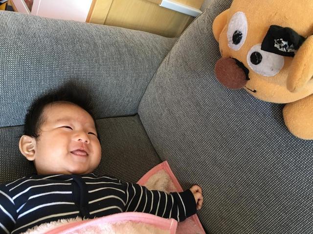 □ □ □ #今日ののあすけ #チーズと #あーうーとおしゃべり(♡ ̇3 ̇) #癒♡♡♡ #めいけんチーズ #鼻と耳に髪ゴムぎゅーぎゅー #かわいそ(¬_¬) #生後67日#baby#babyboy