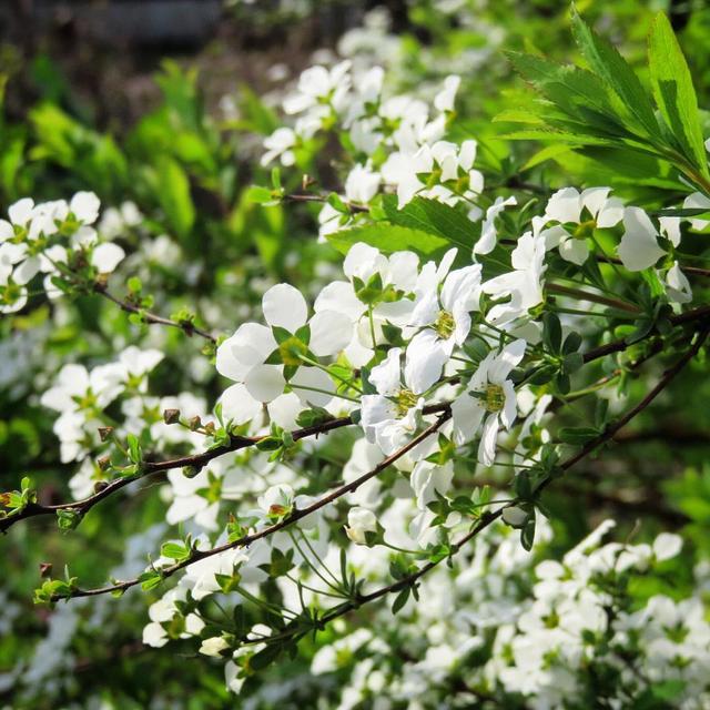 #白い花 #ユキヤナギかな 小さい白い花も風に揺れて綺麗でした(*^_^*)