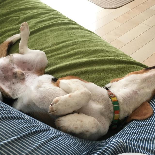 ヘソ天写真集! ようやく撮れました☺️✨ ・ さぁ夕方のお散歩行きましょうかね〜 ・ #みろり #ビーグル #犬バカ部 #ヘソ天