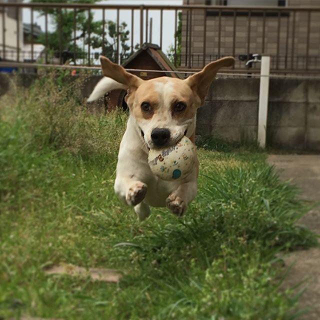 九州の雨雲め!早くこっちに来やがれ!! 元気玉いくぜーーーー( *`ω ́) #poq0502 #ビーグル #レモンビーグル #飛行犬 #雑草ジャングル
