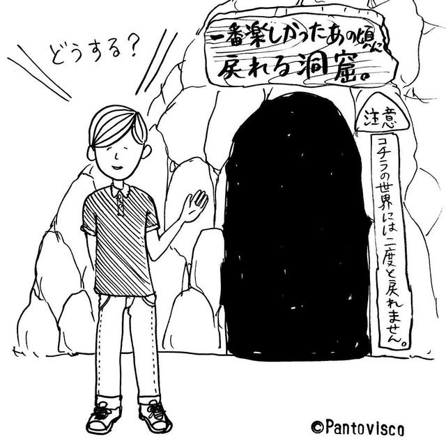 1コマファンタジー『洞窟』#どうする? #やさしシリーズ #1コマ漫画 #1コマファンタジー #絵 #イラスト #シュール #アート #マンガ #シンプル #やさしさん #やさ村やさし #どうしよう #あの頃 #迷う #コーディネーター #やり直したい #穴 #笑顔 #代償 #戻れない #戻りたい #過去 #楽しかった #思い出 #昔 #タイムトラベラー #タイムトラベル #鍾乳洞 #洞窟