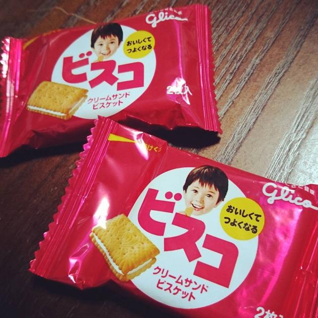 旦那さんの会社でもらったお土産 ビスコ2つ ビスコ大好き明日食べよっ #glico#グリコ#ビスコ#お菓子#おやつ部#旦那さんはけしてグリコの人ではないよ