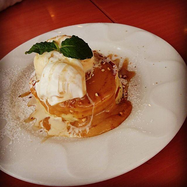 パンケーキ おねぇちゃんとファミレスで 食後にひとつ頼んでわけわけします だけど胸焼け(笑)ぷぷっ #ファミレス#デニーズ#ピーナッツバターパンケーキ#パンケーキ#デザート