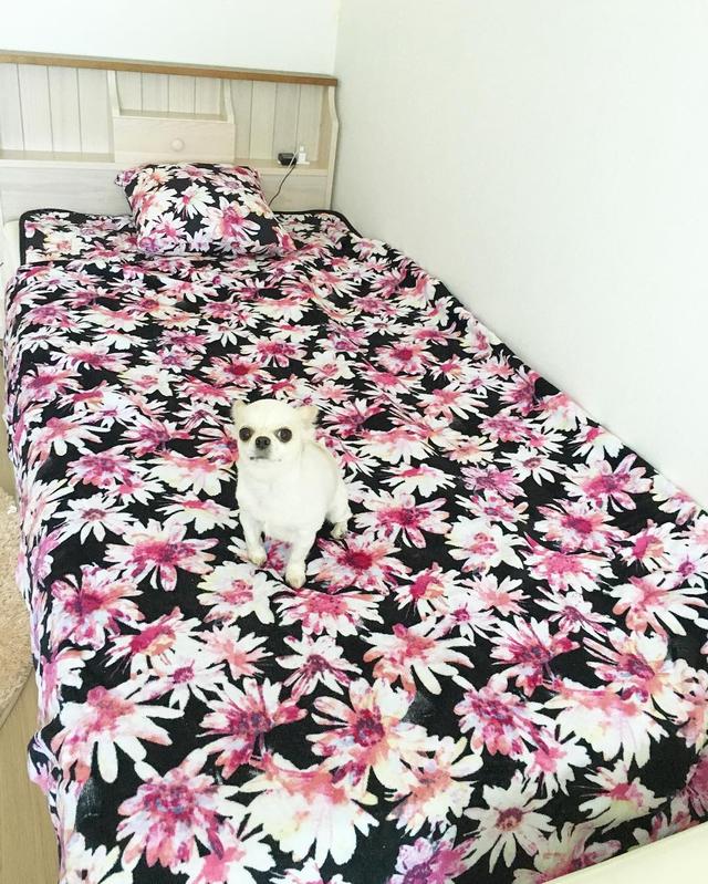 ずーっとインスタ開いたら落ちててやっと復活したッ嬉しいてか新しい寝具にしたよ@rienda_official のだよ(๑•̀ᄇ•́)و✧花柄がめちゃ可愛いッぴぴちゃんも新しいの嬉しいみたい(。 ́・ω・)#rienda #riendahomecollection #ベットカバー #花柄