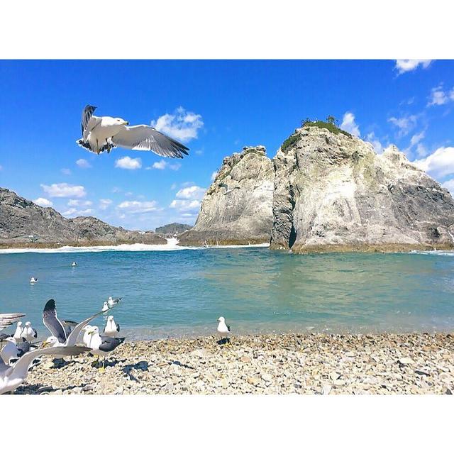 . うみは 広い〜な 大きいな〜 めちゃぎんで浄土ヶ浜! 3時間もここまで運転ありがとう 葵ちゃん! 楽しい思い出ができそう めちゃぎん楽しい 会えて嬉しい❤︎ かもめかわいい