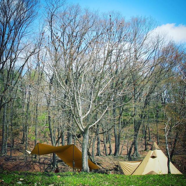 2016.04.30 返コメ前にすみません 昨日は雪が降ってテンションダウン... 連休はおしゃれサイトたくさんで面白い〜(^^) #アウトドア #キャンプ #焚き火タープ #ピルツ