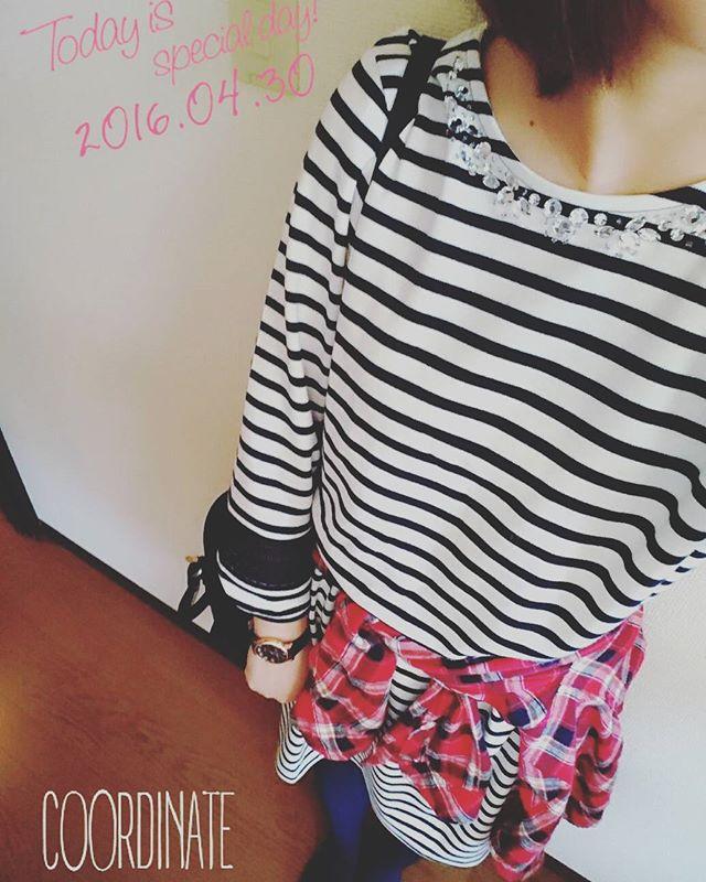 今日のコーディネート☺ボーダーワンピとネイビータイツに、チェックシャツ巻き✴.休日満喫コーデ.本日4post目post癖がつきそう.また夜に会いましょ~.#コーディネート#コーデ#カジュアル#プチプラ#ワンピ#ボーダー族#チェック#シャツ#フォロー#夕飯食べに行ってきます#コメントフォローありがとうございます