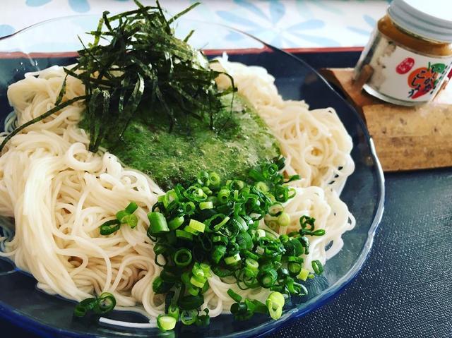 もずくオクラそうめん 島みかんの入った「いしかたこしょう」も超美味でした(๑ ́ڡ`๑) #travelgram #todayslunch #noodles #feellikesummer #YoronIsland