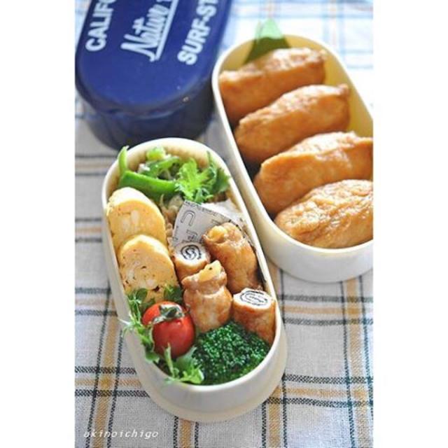 お姉ちゃんの部活弁当です。 肉巻きはキャンディーチーズと海苔の2種類です。 ・ 稲荷寿司、だし巻き玉子、長芋マッシュ、ピーマンとシラスの炒め物、肉巻き、ブロッコリー、プチトマト