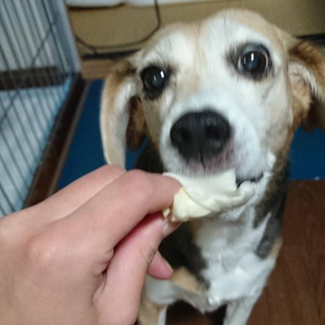 キャベツで水分補給 葉っぱの方は要らないわん芯の方が甘いのわんムシャムシャ ベキチプの為なら嫌いなキャベツも湯がいたり切ったり出来ますわん 匂い、味はとても苦手