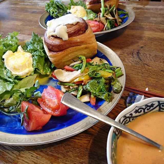 日曜の昼御飯...*こんなシナモンロール作ってみたい...*穏やかな午後を〜#ここさんのうちご飯#昼食#シナモンロール#スタッフドエッグ#today'slunch#cinamonrolls#staffedegg#athomeA happy Sunday