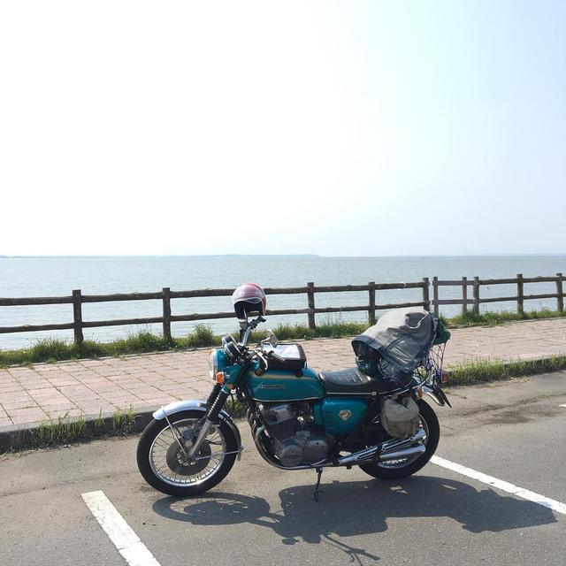 #ノリで来ちゃった 霞んだ目凝らして霞ヶ浦 広すぎw #霞ヶ浦 #cb750four #cb750k #vintagemotorcycle #vintageHONDA #キャンツー 帰りを思うと辛すぎる...