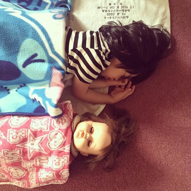 怖い人形と寝てる〜。 #ひよりんげ #昼寝 #人形