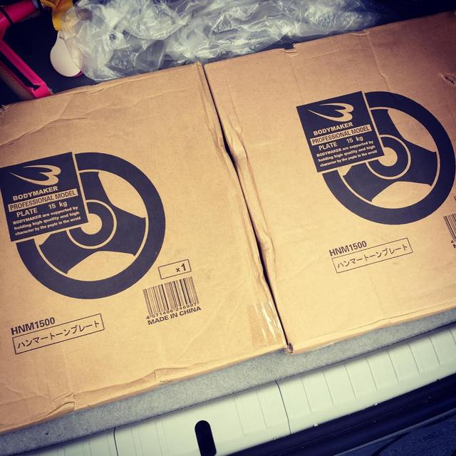 うっしゃーー!!︎!!︎送料がバカにならんから直接買い付けに来たぜーー!!︎!!︎ これからは従来より30キロ増しのトレーニングが出来るぜぃ!!︎!!︎補助無しがちょっと怖いけど...... #筋トレ #トレーニング #ダンベル#筋肉 #ボディメーカー #bodymaker#ベンチ #ベンチプレス