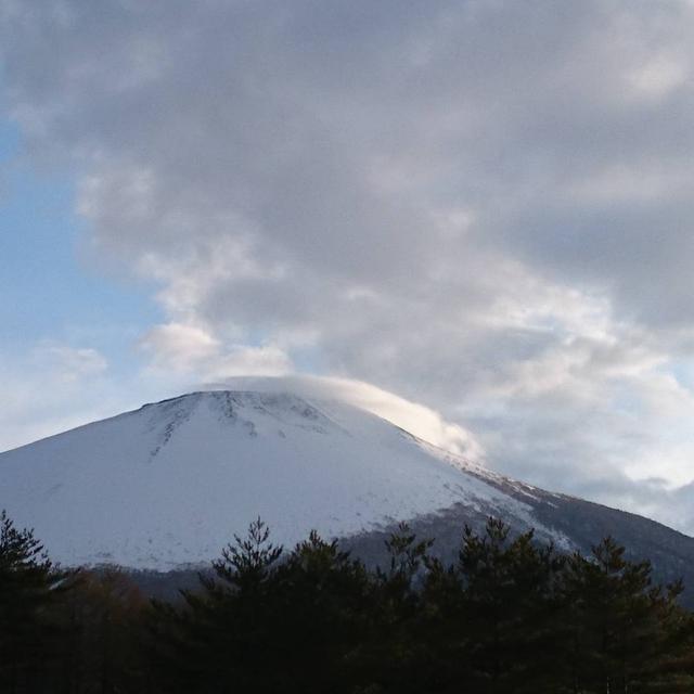 岩手山に来ています✨*夕べ降った雪で山頂は真っ白*傘雲の発生の瞬間を目の当たり#岩手山#夕べの雪#傘雲#夕暮れ#Mt.Iwate#top#coveredwithsnow#theafternoonsun#cloudyA happy day