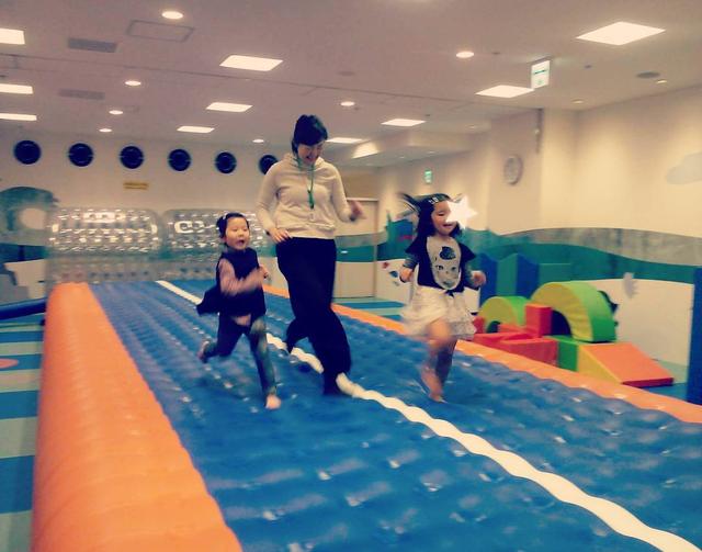 一昨日はお友達とキドキド。トランポリンの上を全力疾走して4歳児2人に負ける。#瞬発力劣化#いろんなとこが劣化**#なぜか人が少なくて快適#夕方だったから?#キドキド #ボーネルンド #トランポリン #エアトラック #全力疾走 #瞬発力 #おでかけ #4歳 #年中 #女の子 #親バカ部 #ラルフローレン #ralphlauren #kids #girls #ig_kidsphoto #instakids #kidokid