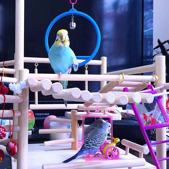 *#おはようございます今朝は予定よりも30分早く、琴紫に起こされました。笑メシ出せメシーーーー!!!ってカンジでw自然のアラーム。そしてゴーペンさんとの初対面では一切怖がることもなく ε(。•ө•。)зほんと肝がすわっているというか、どちらかといえば琴ちゃんのほうが親方風を吹かしております。*#インコ#セキセイインコ#生後6ヶ月半#生後1ヶ月#ふわもこ部#おやばか部 #インコ部#おはぎやま親方#新弟子#琴紫#budgie#instagood#Budgerigar#parakeet#instabird#petstagram