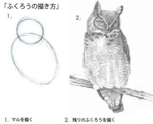 フクロウの描き方