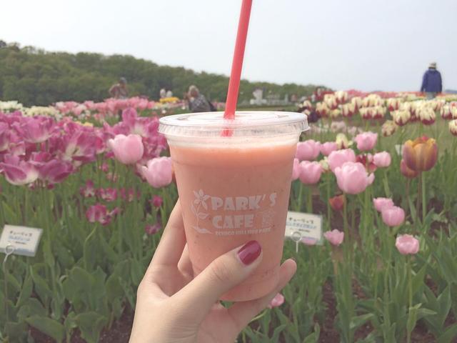 . チューリップをみながら . #strawberry #drink #cafe #yummy #tulip #cute #instafood #instalike #happy #l4l #niigata #0502