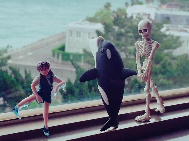 海に帰りたいなぁ。。とシャチ今日は波も高いし、風も強いから止めておいた方がいいと思うぜ!とポーズスケルトン私、今泳いできたけど、波が高かったから気をつけて!とフチ子。フチ子が1番危ない#フチ子#fuchiko#fuchico#ポーズスケルトン#シャチ#シャクレルプラネット#海#sea #窓辺#window#ガチャガチャ#フィギュア#大好き#love#楽しい #happy #instagood