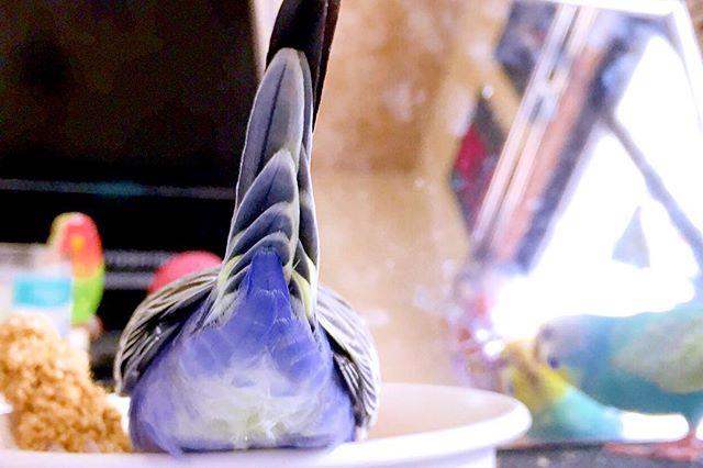 *琴ちゃんのおちり♡琴ちゃん、はやくつむぐりできるようにならないかなァ。※おつむを尾羽の付け根のとこでぐりぐりする例のアレです。広げた尾羽のイエロー×バイオレットのコントラストがめちゃんこ綺麗なのです!早く見せたいな〜。*一昨日琴ちゃんをお迎えして、昨日ですでに慣れて親方と違和感なく遊んでるけど、考えてみたら琴ちゃんヒナよね?ってことで日中は隔離してお昼寝。親方を見るとテンションあがってしまうのでwてゆか、かあちゃんも6時起きでドロドロに眠いのでお昼寝しようかなァ。*#インコ#セキセイインコ#生後6ヶ月半#生後1ヶ月#ふわもこ部#おやばか部 #インコ部#おはぎやま親方#新弟子#琴紫#budgie#instagood#Budgerigar#parakeet#instabird#petstagram