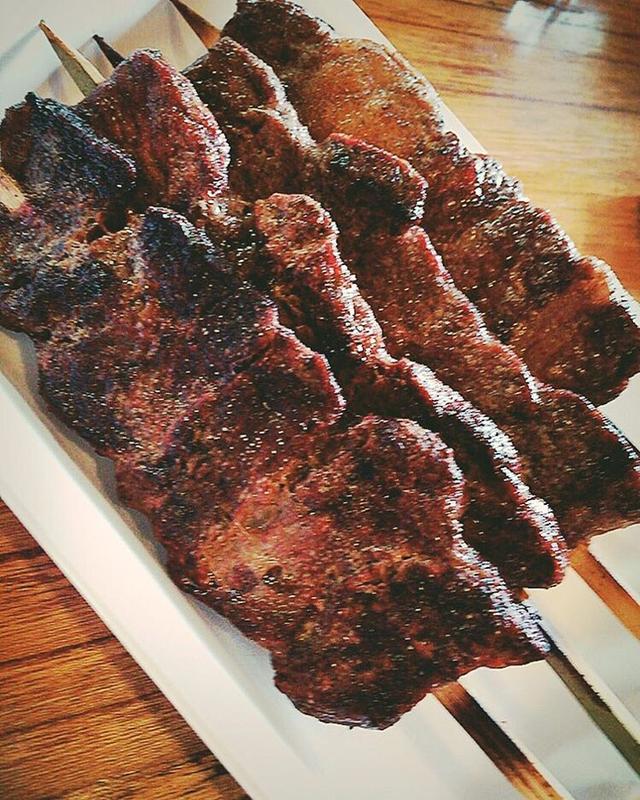 連投すいやせんこっちはほんとに食べた牛カルビ串ちょい焼きすぎ(笑) #連投#すいやせん#GW#ゴールデンウィーク#旅#福島#まんさく農園食堂#牛カルビ串#焼きすぎ#牛さんありがとう#フォロバ#フォロバ100#f4f#デブ活