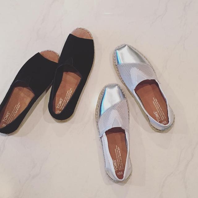 新しく購入した、#toms のシューズ ♡.今年もお世話になります(*^^*).#フラットシューズ #フラット #flat #flatshoes #shoes #シューズ #トムス #購入 #新作 #new #silver #black #シルバー #ブラック #オープントゥ
