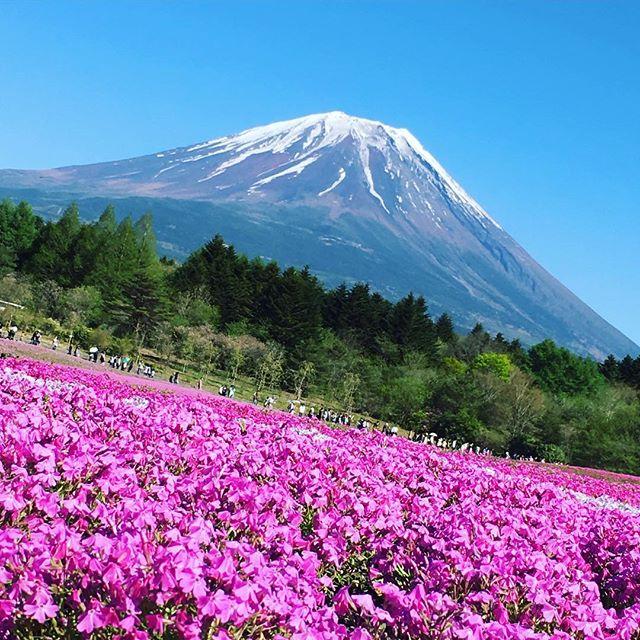 富士芝桜祭り めっちゃ綺麗すぎ~!!️ 天気もいいし最高だ 風も弱まってきた 今から富士急ハイランド もどります笑 #富士芝桜まつり#富士山#GW