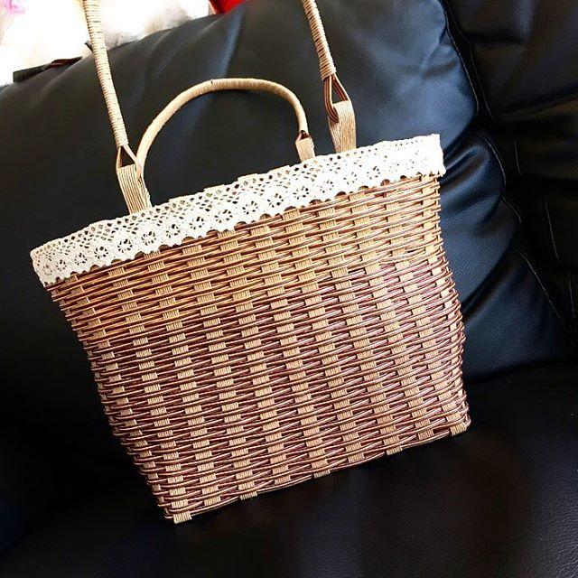 かごバッグ完成(*^◯^*) * * #handmade #ハンドメイド #bag #かごバッグ #手作り #初めてにしては上出来でしょ