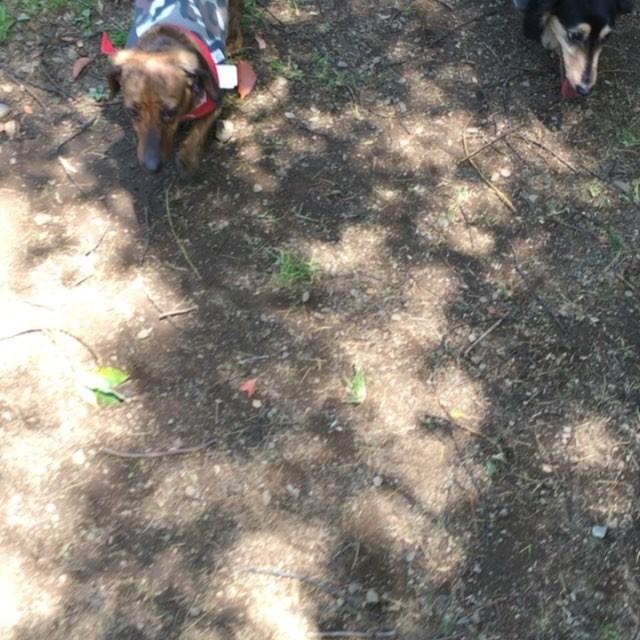 #ドッグラン #ミニチュアダックス 久しぶりのドッグラン、到着するまでに歩きすぎて、へばり気味