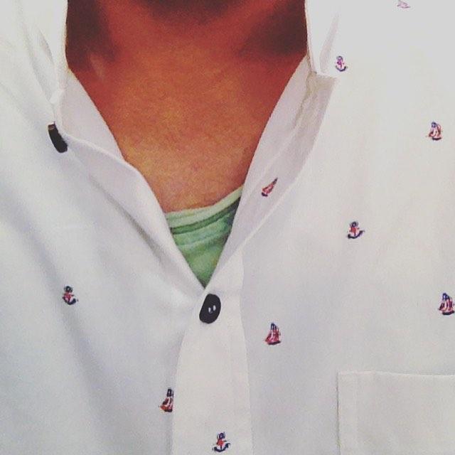 かわいい生地があったので、襟なしシャツにしてつくってもらった。なかなかいい。