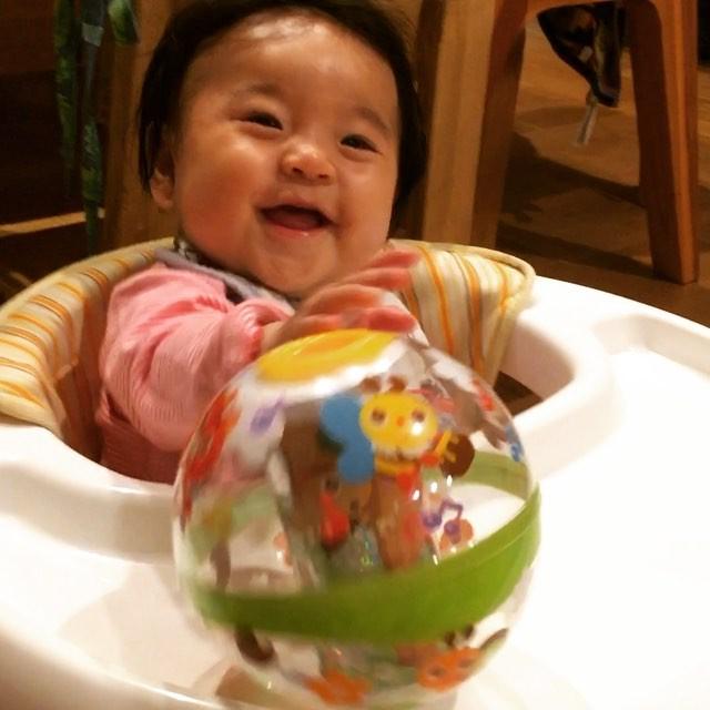 おでこから上にドライヤー☺︎ やめるとべそかく #makana #茉叶菜#次女#6month#6ヶ月 #歩行器はりりもんのおさがりん