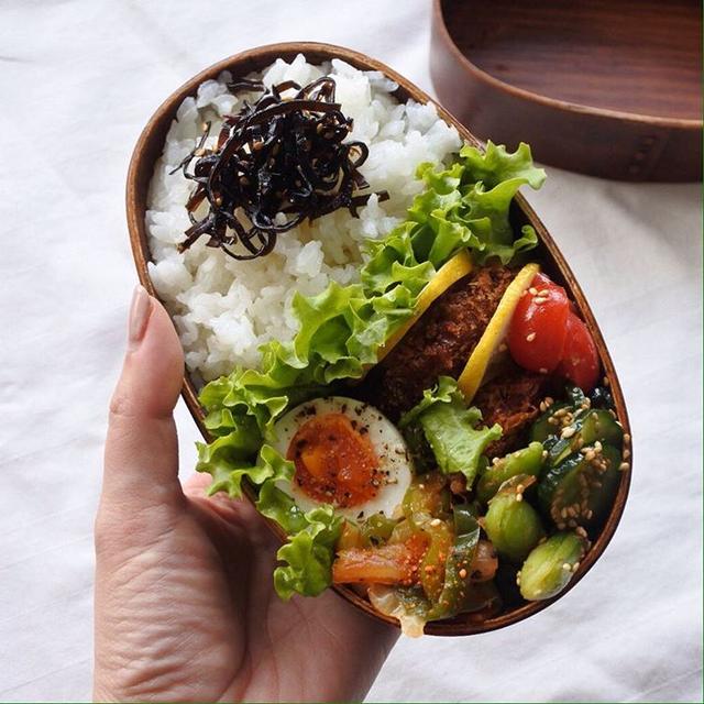 おはよう 今日のお弁当メンチカツ豚キムチ胡麻きゅうりスナップえんどうおかか和え9分ゆで卵昆布ごはん・・太郎さん用にわっぱのお弁当箱をひと回り大きく新調。フタに高さがあってね、間違えてフタにお弁当詰めてしまうのよ...。台所でひとり、あ〜ってなる・・いってらっしゃい ・#おうちごはん#高校生弁当#わっぱ弁当#お弁当