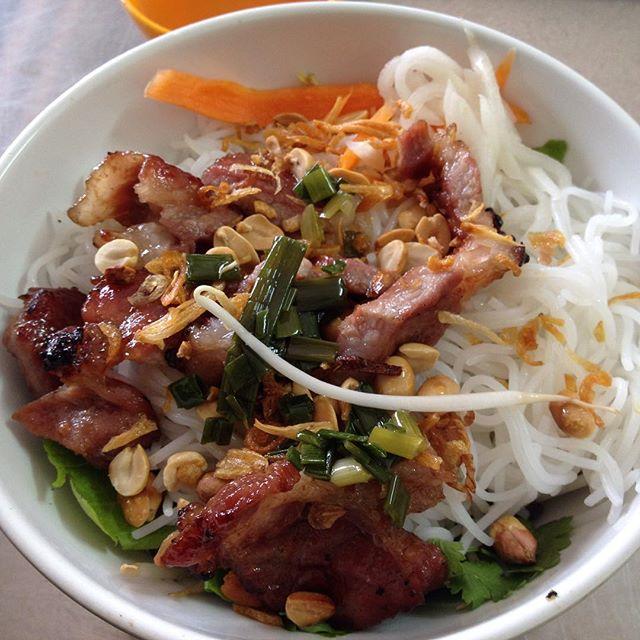 bun thit nuong、炙り豚肉のせ米粉麺。今の家、夜はうるさいけど目の前のローカル店で何を頼んでもほとんどハズレがないんだよね...。
