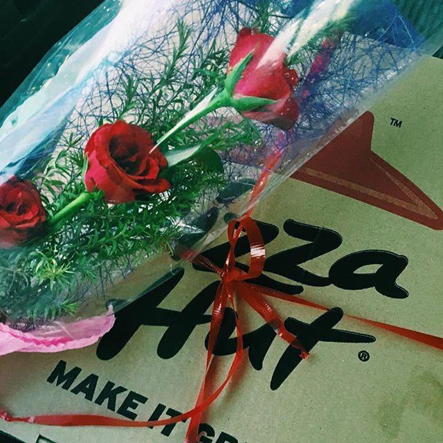 . Roses and pizza for lola. I wish you were here too mom. 赤ちゃんの時から小5までママの代わりに育ててくれたおばあちゃんに感謝の気持ちを込めて薔薇とピザを #mothersday