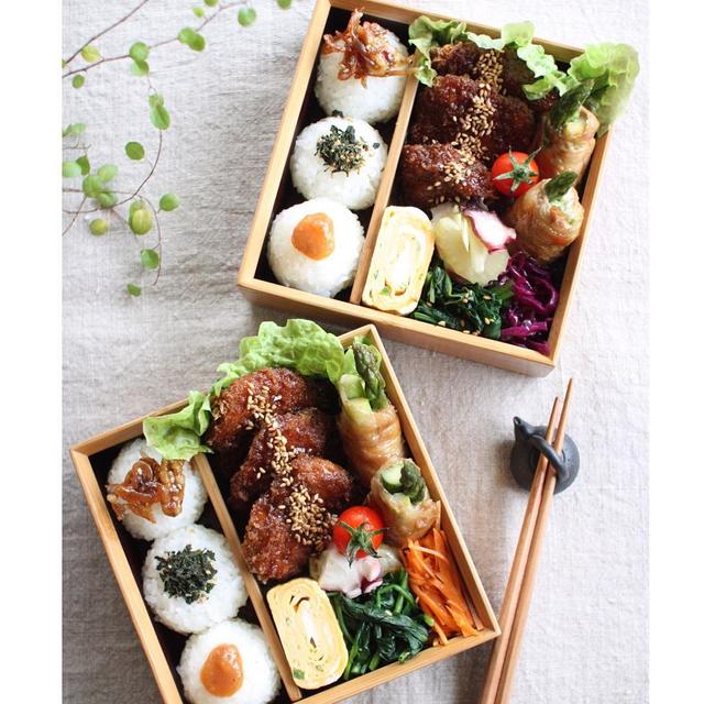 Today's lunch2016.05.09・・おむすび(小女子胡桃、梅ふりかけ、鰹味噌)ソースヒレカツネギ入り卵焼きアスパラ肉巻き蛸とセロリのサラダほうれん草のナムルキャロットラペ紫キャベツのマリネプチトマト・・今日はおにぎり。トッピングを変えてみました。・カツは予めソースがついてる方が美味しいので、ソースカツに。・・今日娘は学校行って速攻帰って来るみたいなので、置き弁です。・・私は仕事。ながーいお休み終って寂しいな・・次はシルバーウィーク??・・その頃には栗とかイクラとか。美味しいもの沢山出てそうだなー❤←常に食べ物で脳内いっぱい。笑・・#healthyeating#nutritious#healthy#healthyfood#foodshare#foodporn#foodpic#photooftheday#pictureoftheday#tasty#instafood#おうちごはん#onthetable#暮らし#お昼ご飯昼食#ランチ#lunch