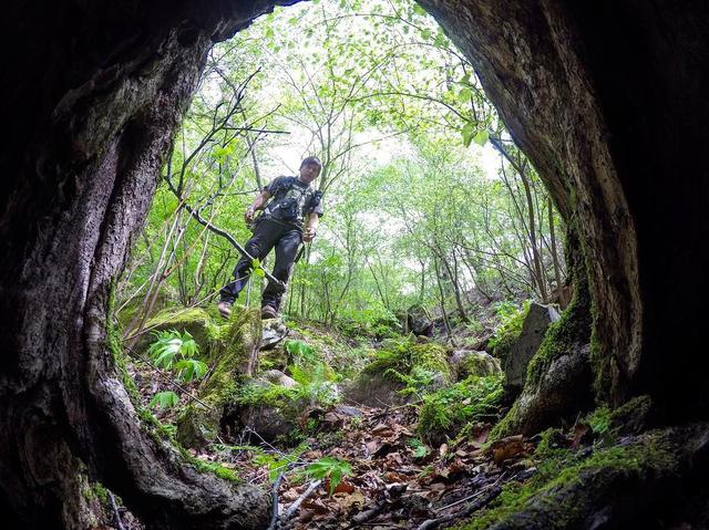 なんかおったらどうしよっとか思いながらカメラを穴の中に置いての自撮り #男池 #黒岳 #ソババッケ #緑 #目がよくなりそう #このルート夏は涼しくてオススメ #ゴープロ #gopro #goprojp #goproselfie