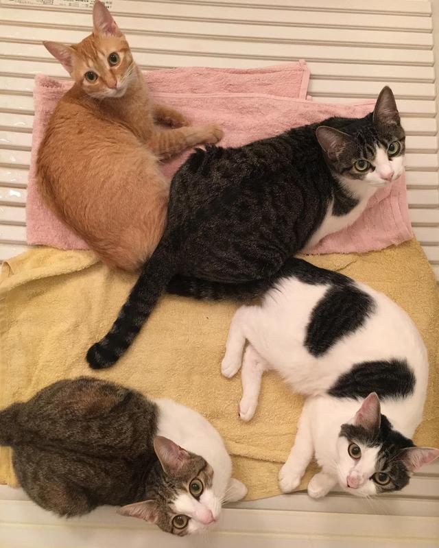 今日は嬉しい事に久しぶりの 猫風呂でした♪ いつも通り誰も来ないのを分かってて二枚のバスタオルを敷いてたのですが、ぞろぞろと参加者が来てくれました 動画は明日にでも...☺️ #お風呂 #bathtime