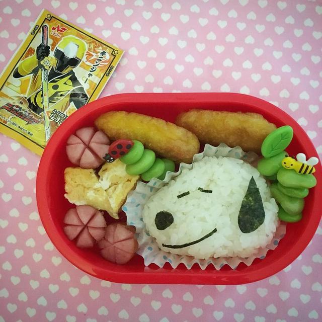□ □ □#今日のお弁当#OBENTO#bento#キャラ弁#デコ弁#幼稚園弁当#スヌーピー#スヌーピー弁当#snoopy#ほんとは遠足だったけど#降水確率90パーで明日に延期#偏頭痛でなかなか起きれんで#いつにも増して#手抜き弁当(つД`)ノ#時間なさすぎてフルーツも切れんやったorz#ふりかけがまさかの#ニンニンジャー wwww#ジュウオウジャーが先に無くなったw#今日から4連チャンでお弁当(_ _).。o○