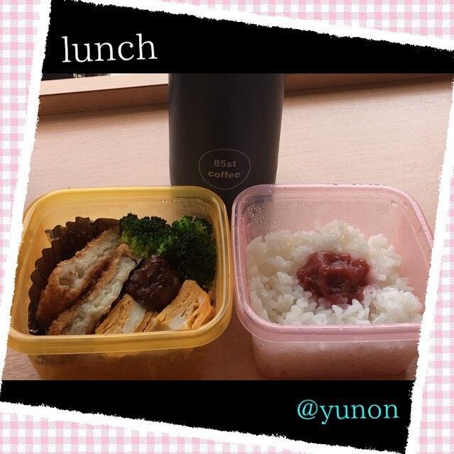 ☆ 早めのちょこっとlunch 大した物入って無いなぁwww * コロッケは何かで金賞取ったヤツ ↑何かって何やったかなwwwすぐ忘れる * #急遽、早番でお昼Time #お天気悪くて暗い...w