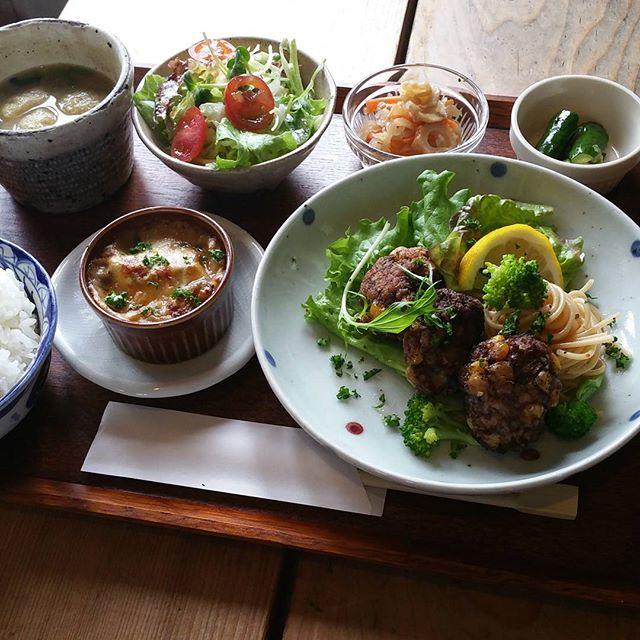 . . 日替わりランチ . . #豚肉とコーンの揚げ団子 #なすびのミートグラタン #切り干し大根煮 . .