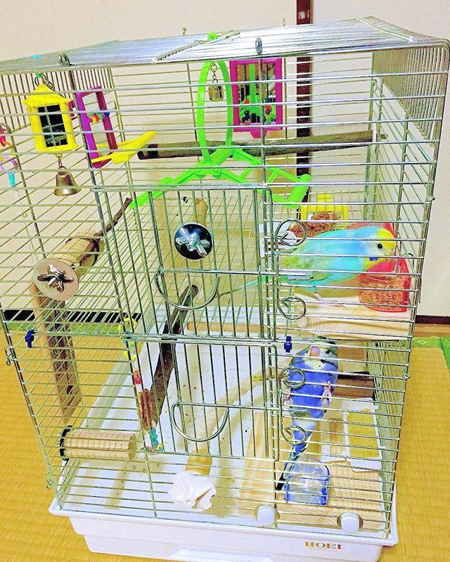 *HOEI35サイズのケージのフン切り網を抜いて、真ん中で結束バンドを使って仕切りました。2階建てにして1ケージで過ごさせています。少し前までは琴ちゃんがあんまり動かずキャリーやケースでした。親方も朝夕でケージを分けて使っていましたが、日曜からようやく同居ー♡狭いかしら...と思ったけど、ふたりともケージ内はそんなに動かずに地蔵に近いのでいっちょあがりでした♡*#夜は共に寝室でおやすみなさい#インコ#セキセイインコ#生後6ヶ月半#生後1ヶ月#ふわもこ部#おやばか部#インコ部#おはぎやま部屋#おはぎやま親方#親方#新弟子#琴紫#琴ちゃん#cherrytree#budgie#instagood#Budgerigar#parakeet#instabird#petstagram