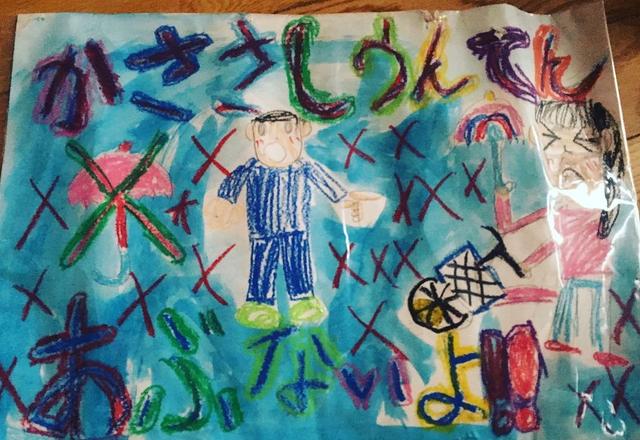 こちちらは長女が描いたポスター 傘さし運転あぶないよ #次女#絵#ポスター#傘さし危険#子供画伯#drawing #小3#交通安全 学校で描いた作品 #交通安全 参加賞で連絡帳と蛍光ペン頂いてご機嫌