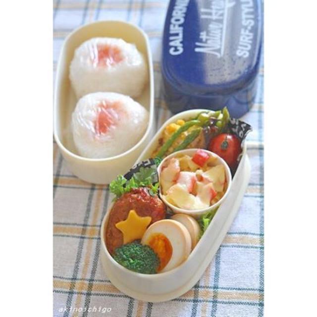 先日作ったお姉ちゃんの部活弁当です。自家製冷凍食品に助けられたお弁当です。ストックがあると楽チンですね ・ たらこおにぎり カニカマぐらたん お麩入りハンバーグ 味玉 ブロッコリー ミニアスパラとしいたけの卵炒め
