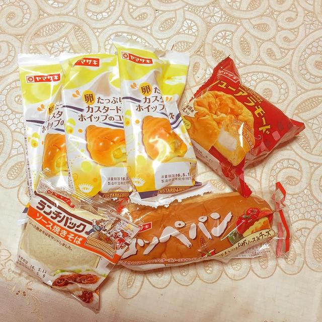 昨日たくさんパンもらった( ̄▽ ̄)私の好きなダフルクリームだけど、こんな食べられない...。相棒にあげたい。全部焼きそばパンなら全部たべれたけど♪#パン#たくさん#甘い#ダブルクリーム#焼きそばぱん#コッペパン#コロネ#シューアラモードなぜ賞味期限がこんなに近いんだ。食べられないじゃないか。誰か手伝って( ́°ω°`)↯↯ w
